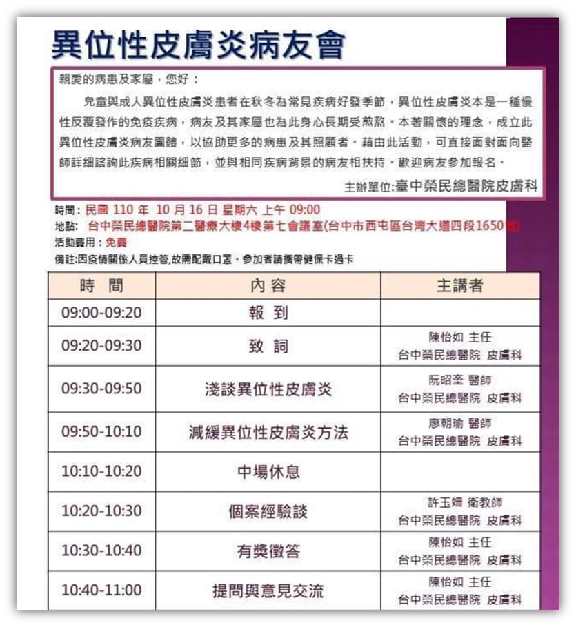季節變換時,關於台中榮總的異位性皮膚炎病友會 照護分享(上)