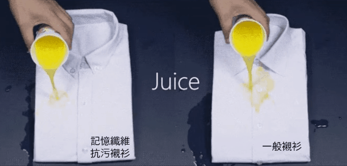 防水抗污的同時, 纖維還能拉伸透氣 (不然就變成穿雨衣了.....)