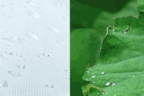 荷葉的葉面上密密麻麻地排列著肉眼很難分辨的絨毛,荷葉本身又附有生物蠟,表面張力非常低,水的表面張力是72mN/m,高于荷葉表面于約30mN/m,所以水分子之間的凝聚力要比在蠟面上的附著力强,這時候水分子極力向內收縮以减少與空氣的接觸面,水珠接近完美圓形,導致水珠只能够在荷葉表面滑動,而無法附著在荷葉表面。