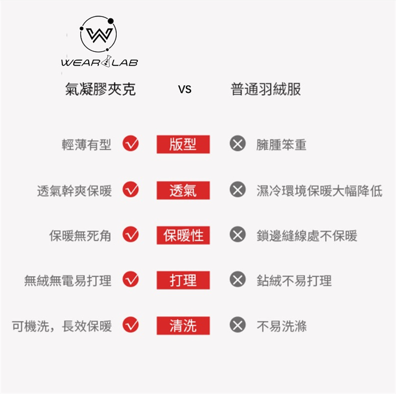 ✍ Wear Lab 同時整合金屬鋁膜內裡,快速反射人體熱能達到蓄熱效果,將衣服做到輕薄又保暖