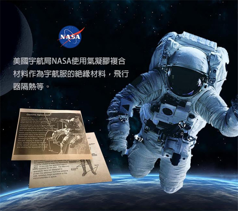 ✍ 氣凝膠最開始應用在NASA探索MARS的防寒設備,或是以其膠狀特性在太空中搜集星塵微粒.